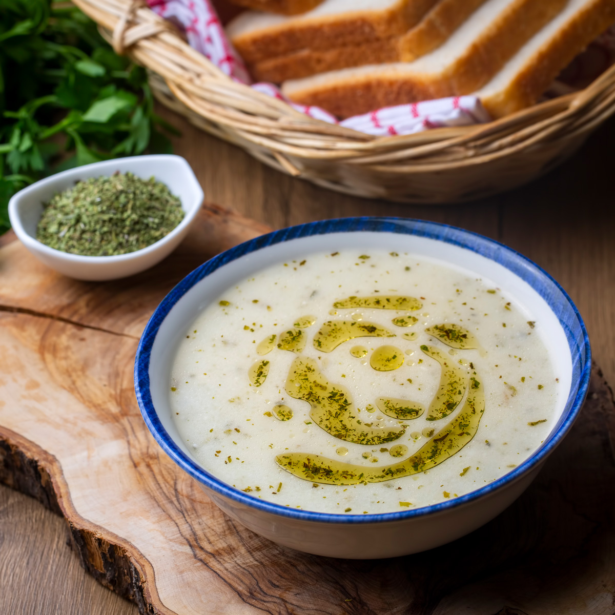 L’ayran çorbası, ou soupe d’ayran, est une soupe turque froide et rafraîchissante. Elle est préparée avec du yaourt mélangé à de l’eau (ou du babeurre), auquel on ajoute du blé concassé (ou boulgour) et des pois chiches cuits. Parfumée avec de la menthe fraîche ou séchée.